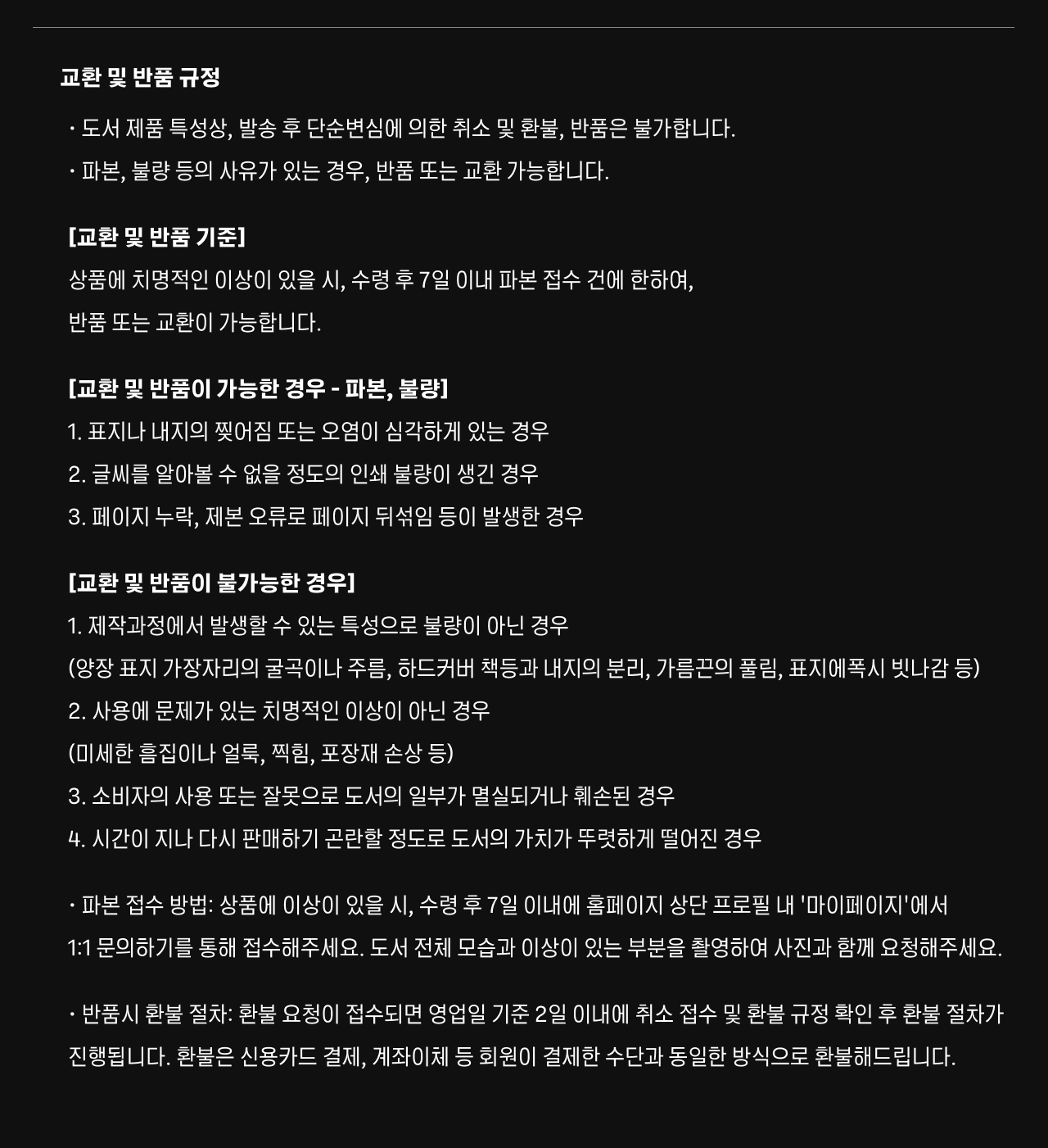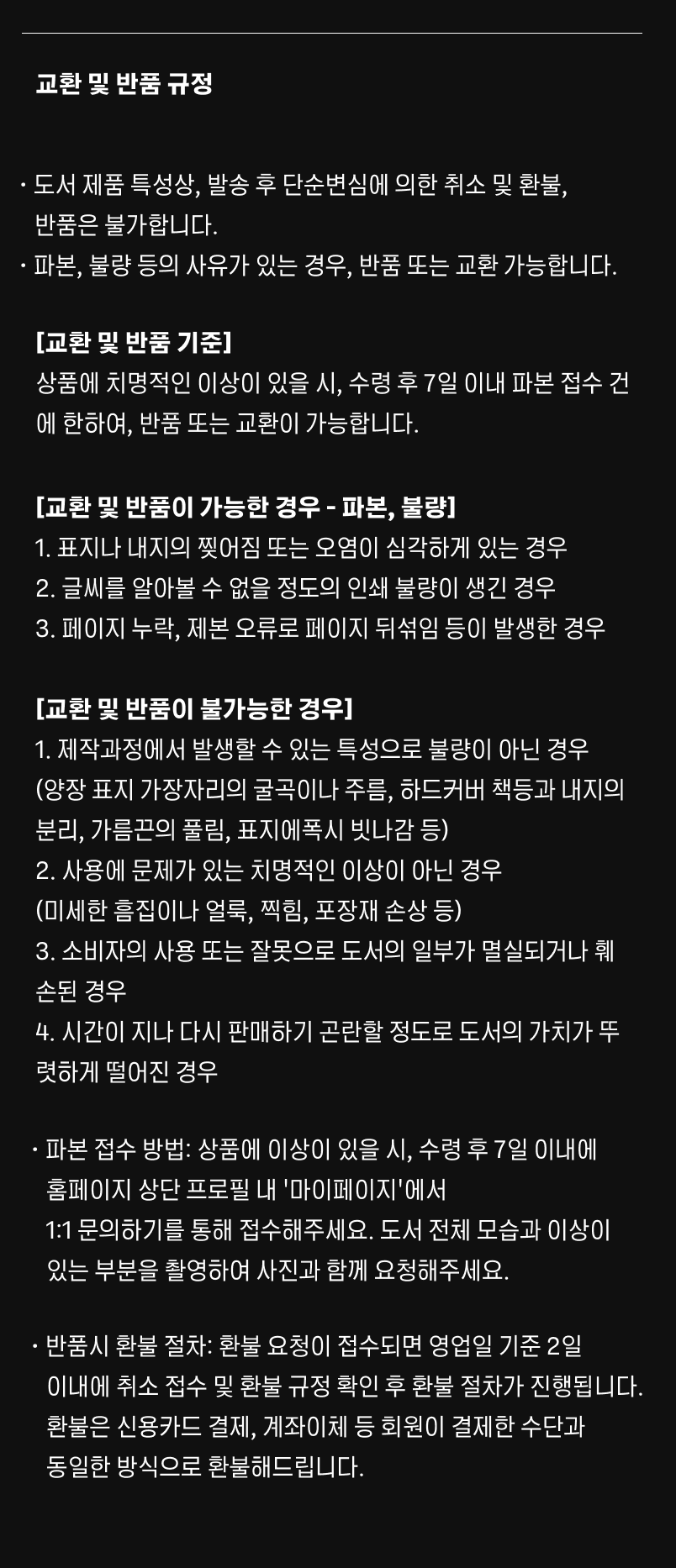 - 파본의 경우 교환 및 반품접수가 가능합니다.