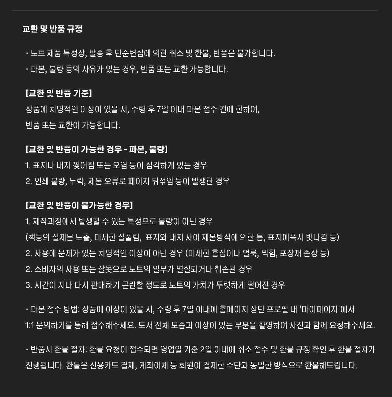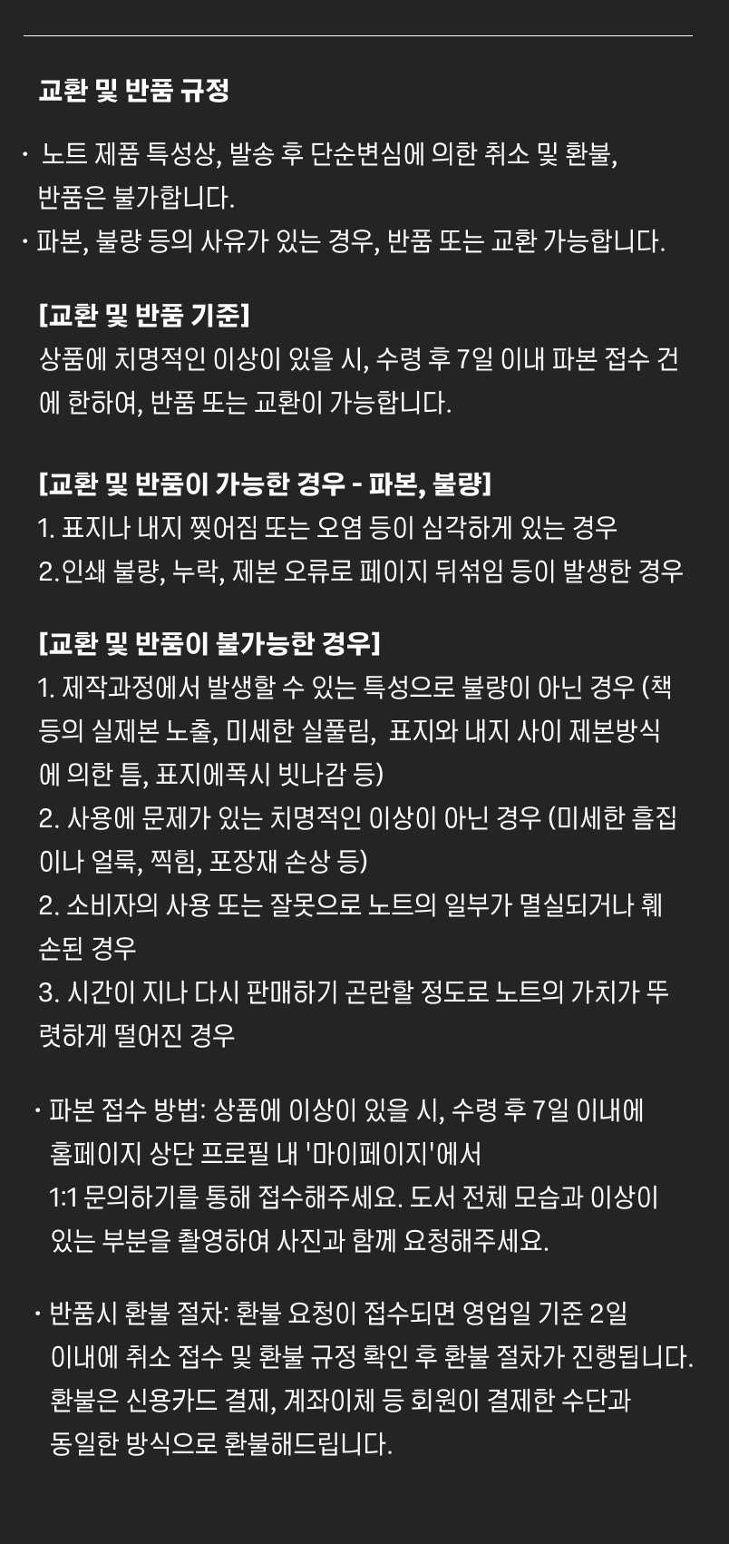 - 자세한 교환 및 반품 규정은 상세페이지 맨 하단을 확인해주세요.
